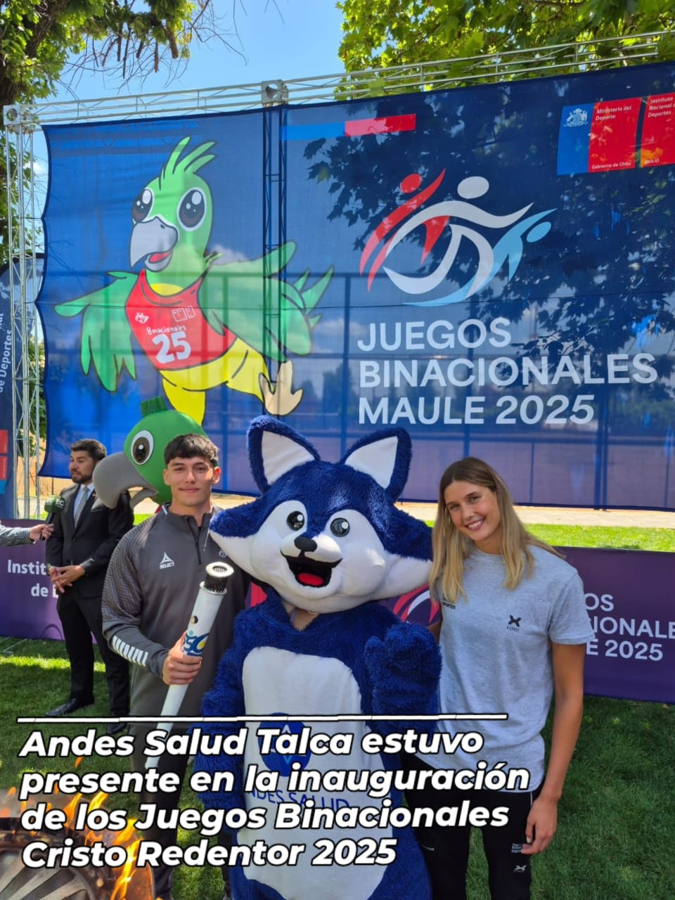 Andes Salud Talca estuvo presente en la inauguración de los Juegos Binacionales Cristo Redentor 2025, evento que reúne a jóvenes deportistas de Chile y Argentina en una semana de integración, trabajo en equipo y espíritu deportivo en la Región del Maule.