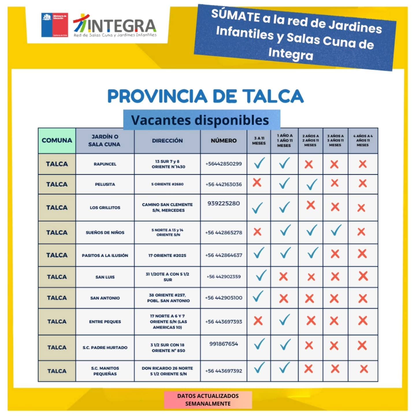 “Súmate a la familia de la red de Jardines Infantiles y Salas Cuna de Integra en la región del Maule @integra_maule