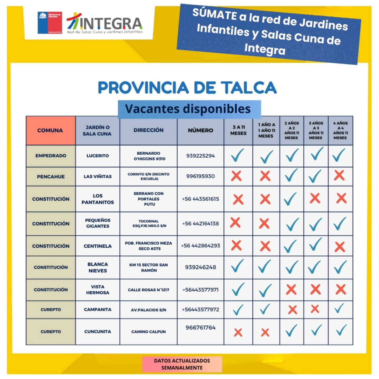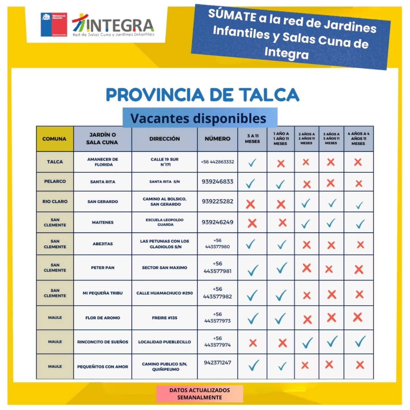 “Súmate a la familia de la red de Jardines Infantiles y Salas Cuna de Integra en la región del Maule @integra_maule
