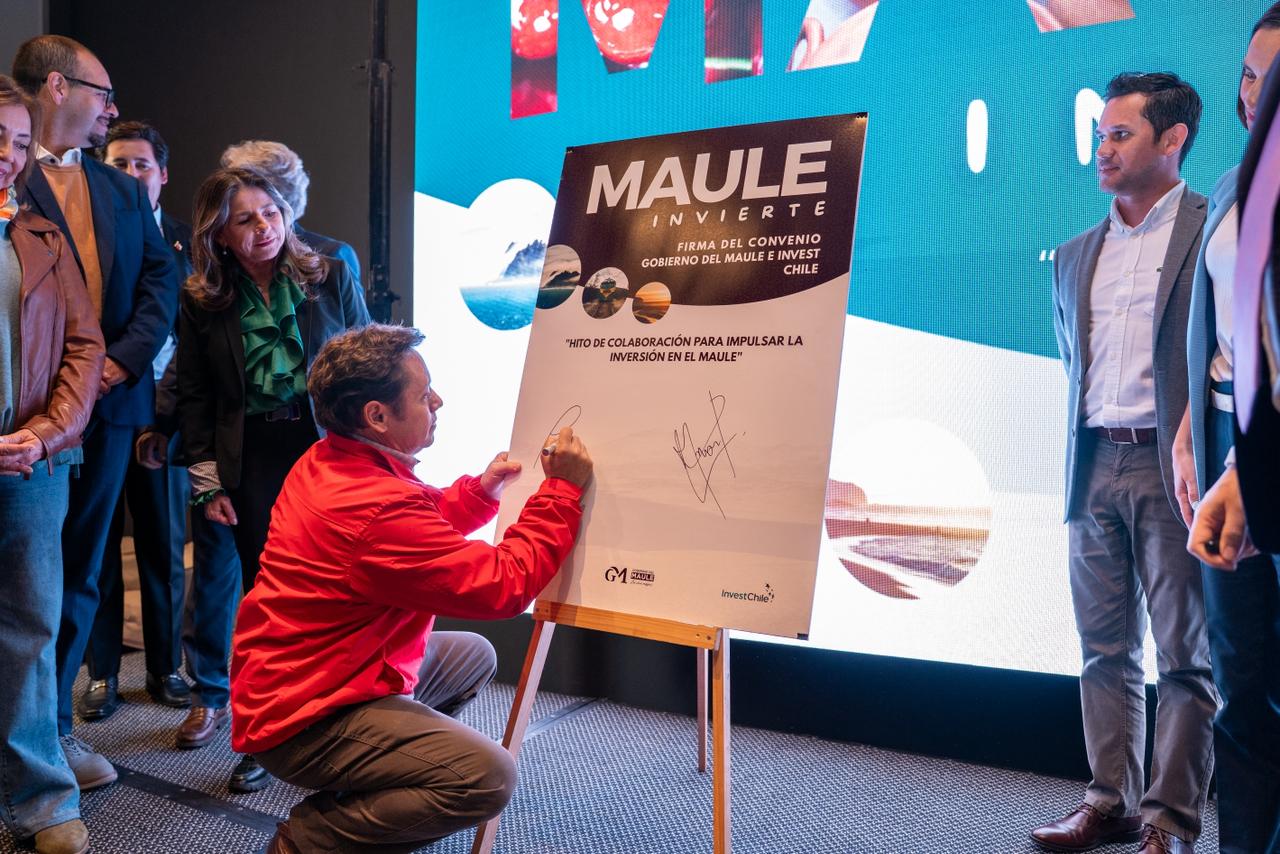 En la ocasión, se llevó a cabo la firma de un convenio de colaboración entre el Gobierno Regional del Maule e InvestChile, instancia que marca un hito en el fortalecimiento del trabajo conjunto para la promoción y atracción de inversión extranjera en la región, permitiendo avanzar en la descentralización de oportunidades y en el desarrollo de capacidades que impulsen el crecimiento económico y la generación de empleo.